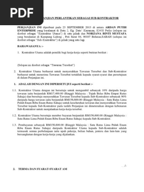 Surat Perjanjian Perlantikan Sebagai Sub Kontraktor Pdf
